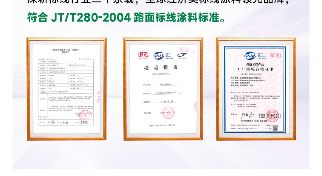 ?專家測評:標(biāo)線特點:優(yōu)質(zhì)苯丙基料、金紅石鈦白/有機(jī)鉻黃顏料、多重優(yōu)質(zhì)助劑、復(fù)合工藝、標(biāo)準(zhǔn)化檢測;色澤好、覆蓋強、宜施工、不起泡,耐磨耐候、品質(zhì)一致性好;執(zhí)行標(biāo)準(zhǔn):符合JT/T280-2004主要標(biāo)準(zhǔn);