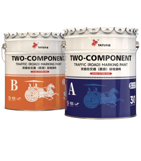 該涂料是一種由 GR-S502進(jìn)口活性丙烯酸樹脂、優(yōu)質(zhì)復(fù)配顏填料及多種功能性助劑,經(jīng)特殊工藝制成的薄噴型標(biāo)線材料。因雙組份噴涂的標(biāo)線施工方式,尤其是其線型外觀與國內(nèi)普遍使用的常溫標(biāo)線相同,且因標(biāo)線表面可面撒玻璃珠反光,標(biāo)線使用壽命較好,國內(nèi)近年來得以較多使用。但因其存在難以避免的施工期間需頻繁清洗(不能充分固化的外混方式除外)、施工干燥速度慢、施工初期表面易污染、使用壽命相對較短、綜合性價比較低等弊端,故歐美標(biāo)線行業(yè)較少使用。