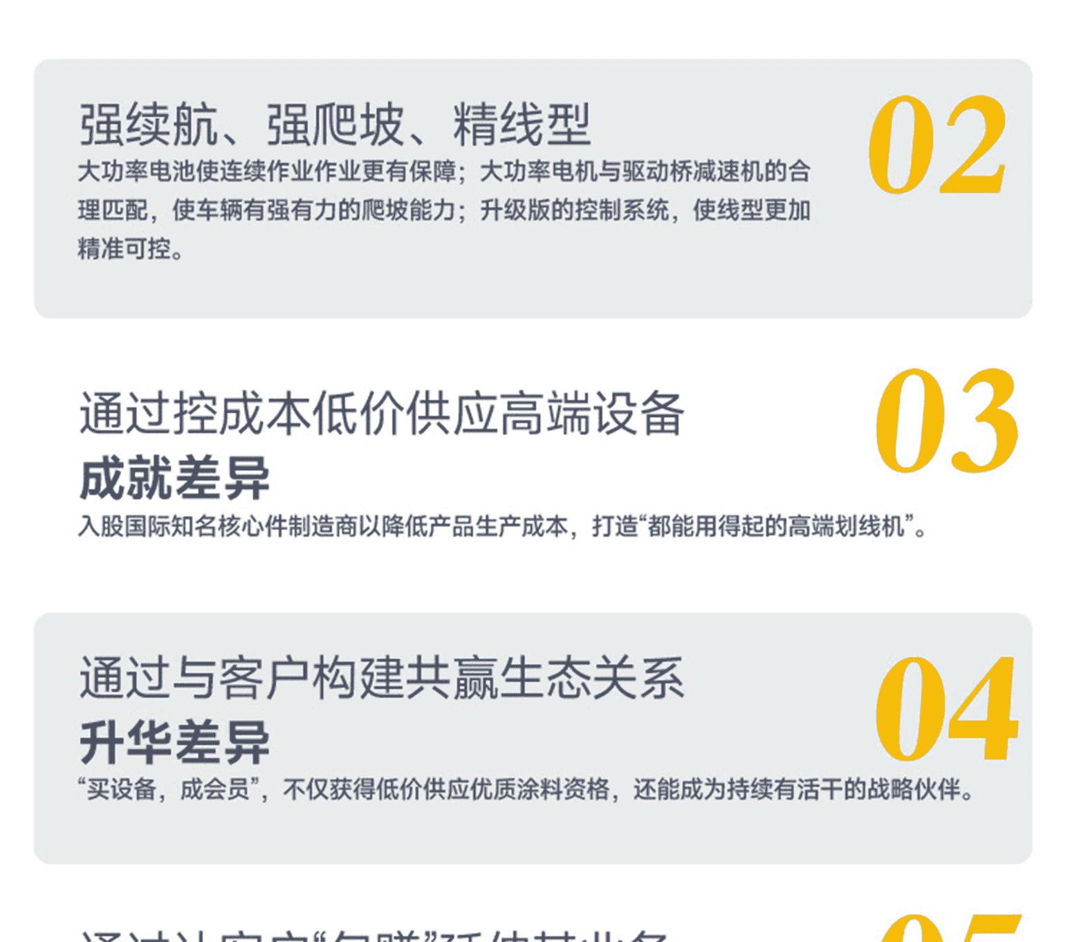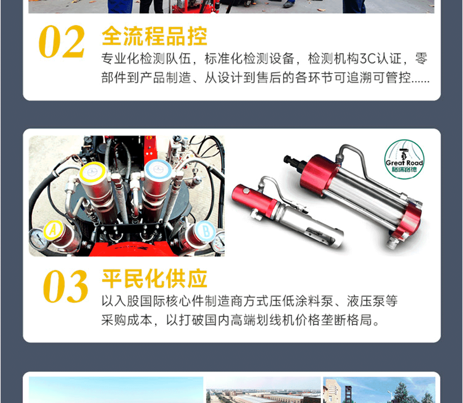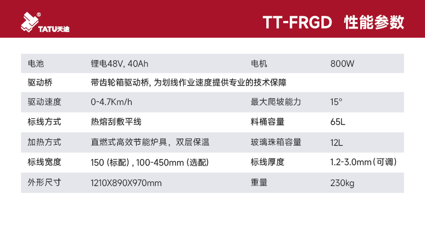?專家測評:主要特點(diǎn):刮敷施工,線型整齊美觀,結(jié)構(gòu)簡單易維護(hù)。大功率電機(jī),坡道劃線線型穩(wěn)定整齊。大功率鋰電池,環(huán)保,續(xù)航能力強(qiáng)